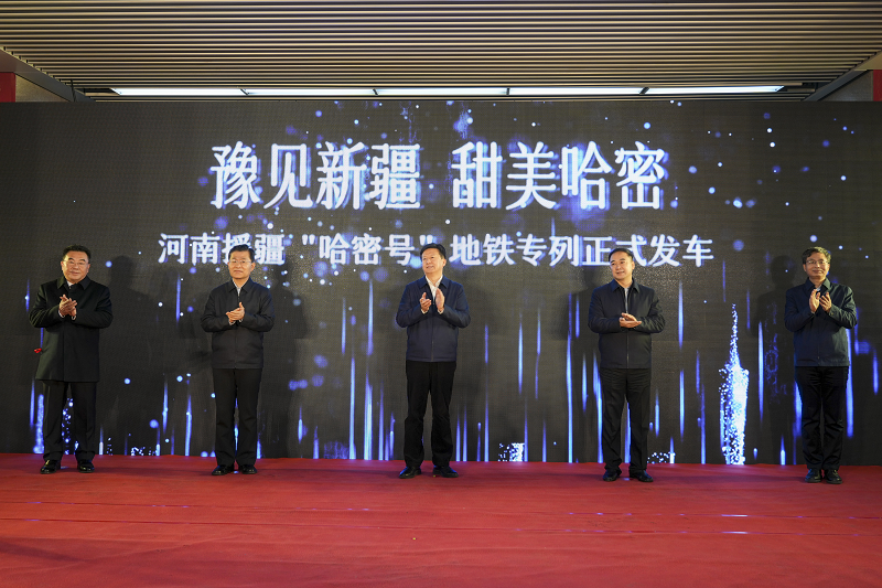 1月31日,鄭州地鐵河南援疆“哈密號”專列發(fā)車儀式在1號線紫荊山站舉行。哈密市委書記孫濤,鄭州市委副書記、市長何雄出席儀式并致辭,河南省發(fā)改委副主任夏志勝,哈密市領(lǐng)導(dǎo)李科瓊、徐相鋒、馬文郁、付劍偉、孫永民、李建勇,鄭州市領(lǐng)導(dǎo)史占勇、翟政、范建勛等參加儀式。