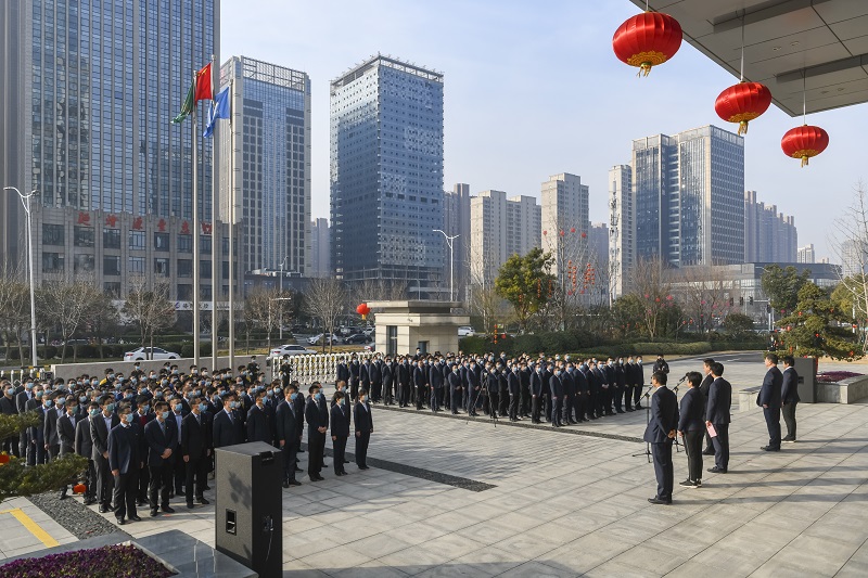 32907公司舉行2021年春節(jié)升旗儀式暨 鄭州市平安建設(shè)基層創(chuàng)建示范單位揭牌儀式