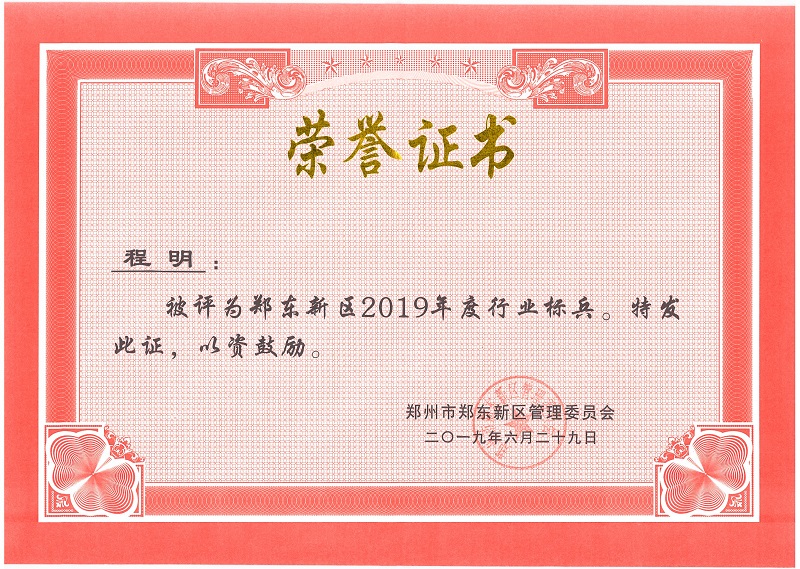 砥礪前行 不忘初心——地鐵集團(tuán)供建中心副主任程明喜獲鄭東新區(qū)2019年度行業(yè)標(biāo)兵
