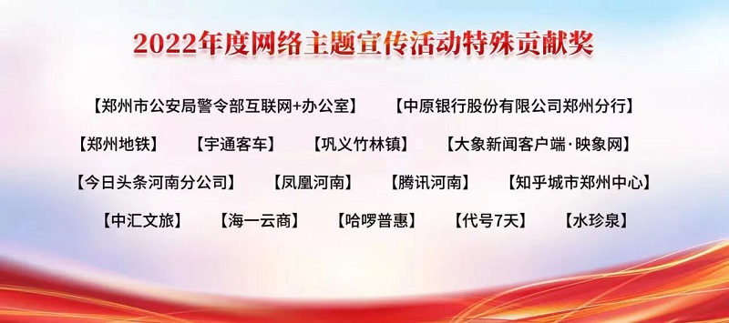 12月13日,在鄭州市委網(wǎng)信辦2022年度鄭州市網(wǎng)絡(luò)主題活動(dòng)評(píng)選中,公司獲得特殊貢獻(xiàn)獎(jiǎng)。