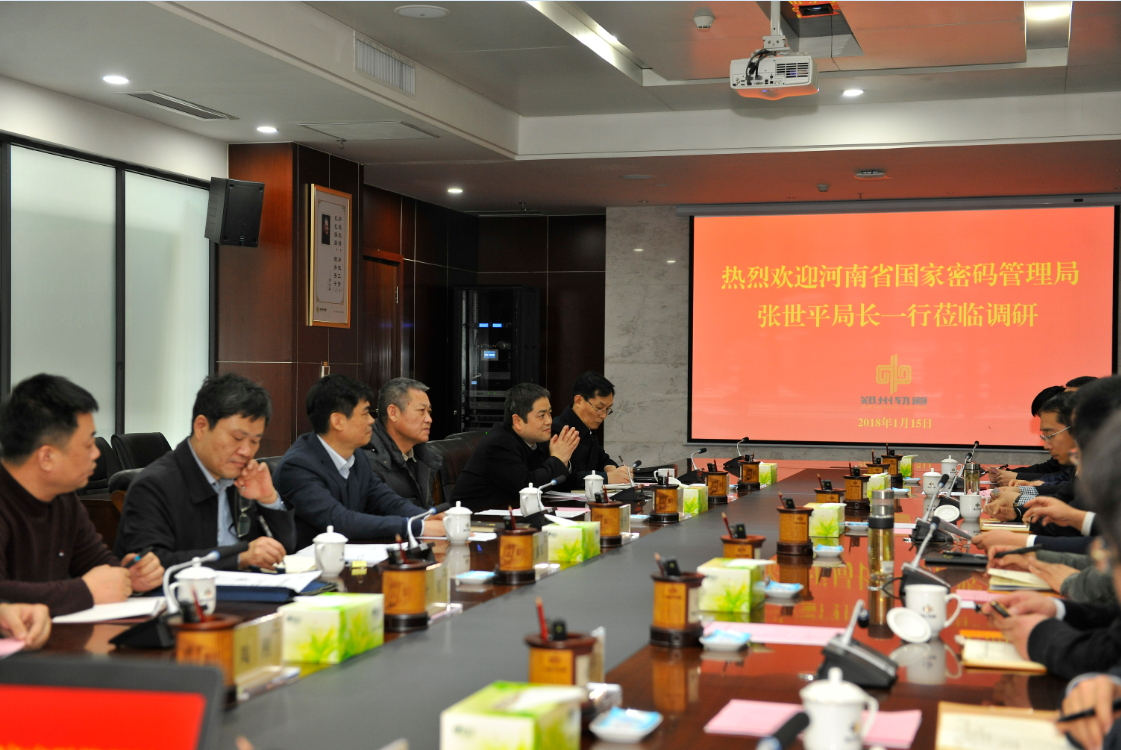 27419河南省國(guó)家密碼管理局張世平局長(zhǎng)一行蒞臨公司調(diào)研
